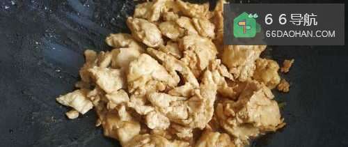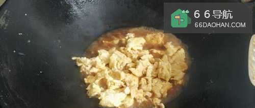 6将炒好的鸡蛋倒入锅中。