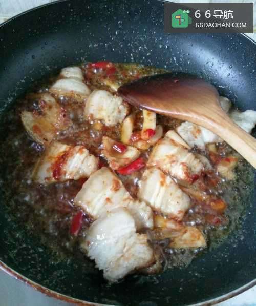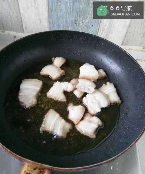 10改小火,放入五花肉,立刻盖盖子,油炸出一半的时候关火,用余温炒肉,避免开盖溅到身上