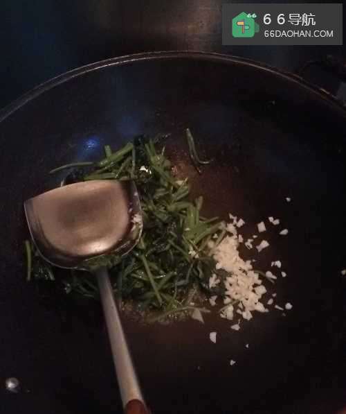 9将芥蓝和蒜末翻炒均匀,蒜香味出来后,就可以出锅了。