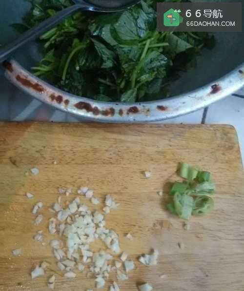 2将小芥蓝切成二寸长的段,将葱切成小片。