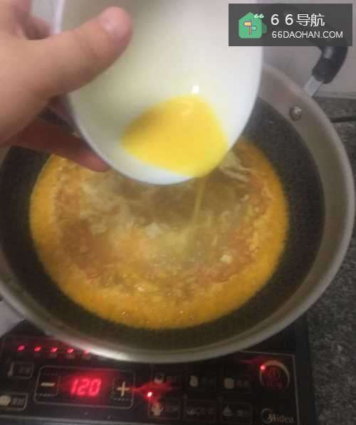 5待锅中番茄炒至松软并呈现浓稠状时,向锅中加入适量的清水,盖上锅盖煮。