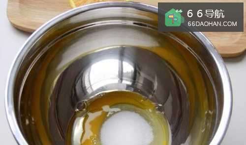 2鸡蛋打到一个容器中,加入白砂糖彻底拌匀。