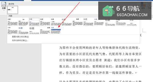 33.后我们选择最后一个设计格式,段落字体就会按照此设计格式自动调整,如下图所示。