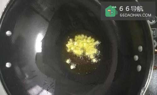 3在锅里放油,烧热后,放入事先准备好的蒜末、姜末爆香。