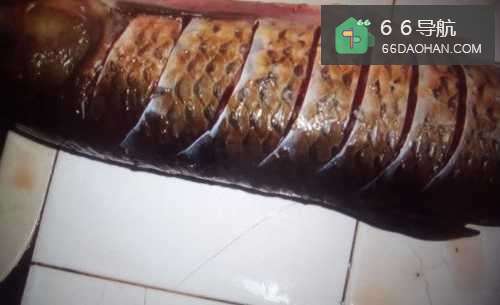 22、如图所示,鱼可以分为两部分来切,第一种是整条的,在鱼身上划一条一条的,并不是切断。