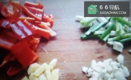 葱切成细细的,是大葱的就切成段,辣椒我是随便剁剁的,有耐心的越细越好。