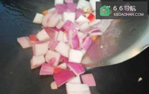 把胡萝卜,洋葱,红椒香菇都切碎丁。