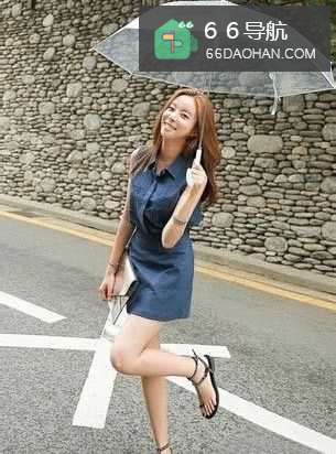 2深蓝色也是ol装扮中常见的色彩,衬衣加短裙的套装款式,知性又不失休闲,无袖设计清凉时尚,小摆的A字裙很甜美。