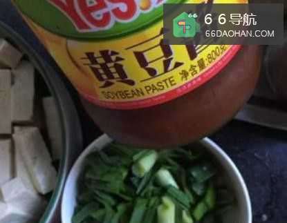 4锅中入油烧热放入黄豆酱,淋少许水煮沸