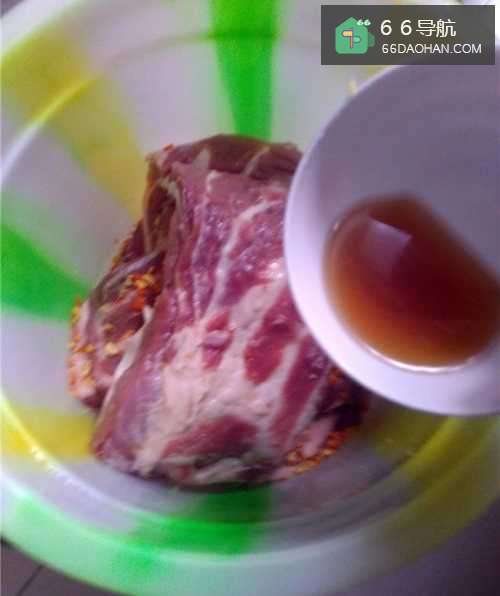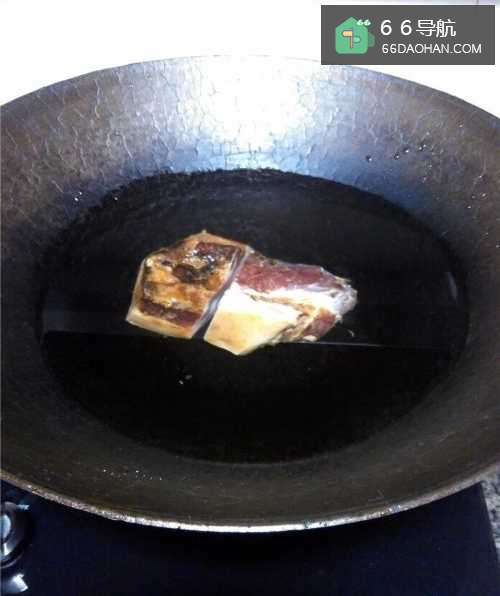 7晒干的腊肉洗净,放入锅里,扬施针倒入适量清水。