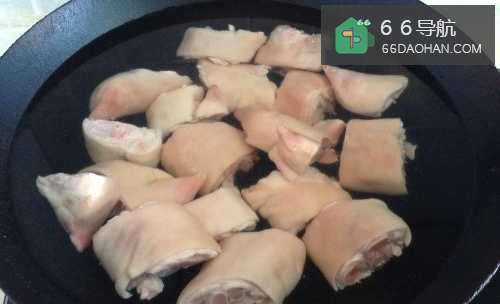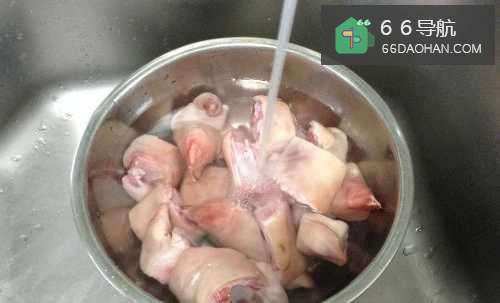 猪蹄剁成小块,放清水中泡一会儿,洗净。