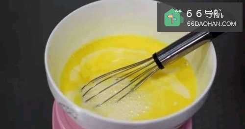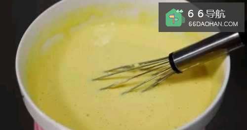 2用手动打蛋器或筷子将鸡蛋搅拌成均匀的蛋液,再倒入牛奶,家中如果没有牛奶又想做这款华夫饼就用清水替代;