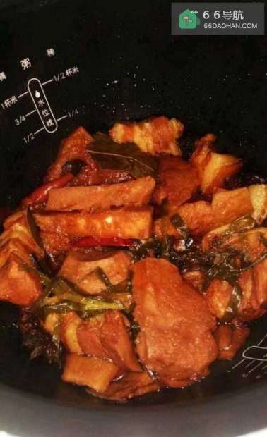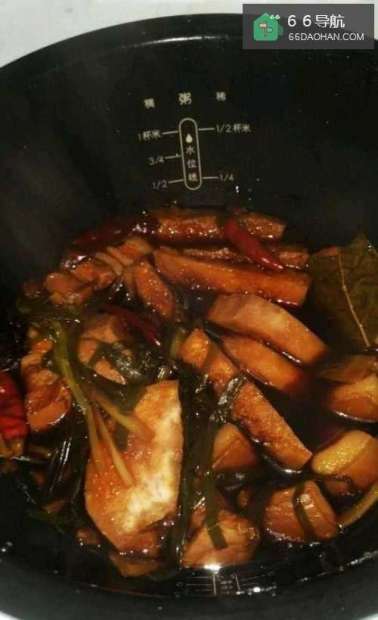 2五花肉好了,把所有材料放到里面,加水刚没过五花肉就可以了!定时煮110分钟。