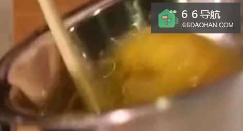 油热加生姜片爆香,放温和的生姜片是为了去掉蟹黄的“寒”性,增加香味,等到姜片金黄后捞出