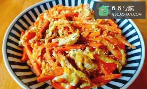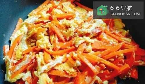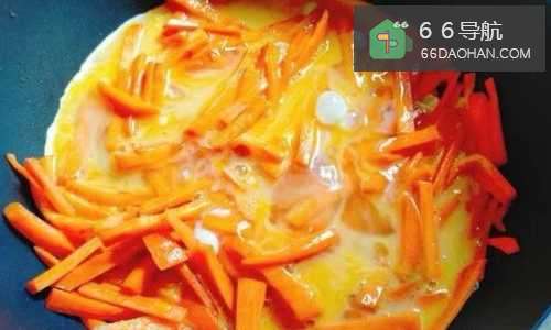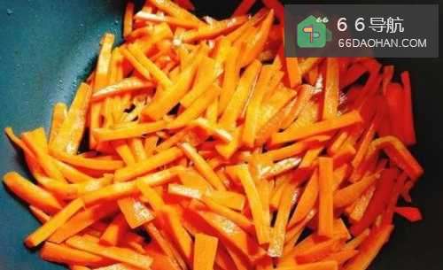 33、锅中放入适量油后,加入胡萝卜煸炒一下。