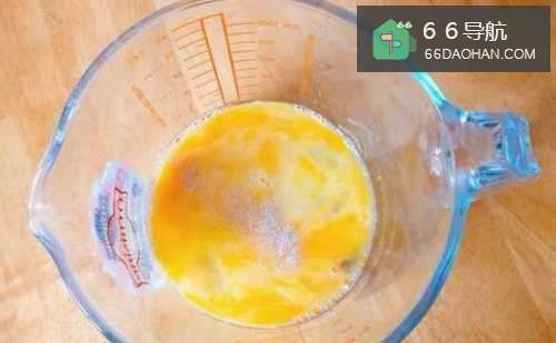 1、胡萝卜洗净去头尾切条;鸡蛋洗净外壳擦干后分颗打入碗中。