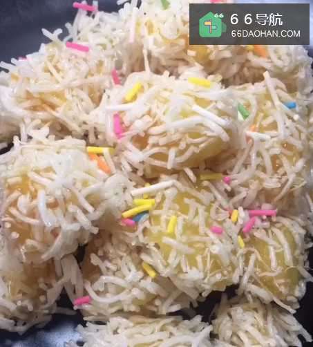 5倒入苹果,快速搅拌均匀,最后沾上捏碎的粉丝即可。