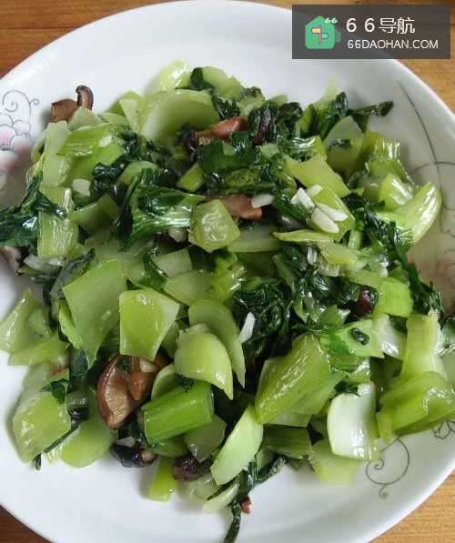 油菜中加上蒜末,绿叶蔬菜的清香味更浓了,下面就来炒油菜。