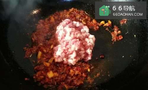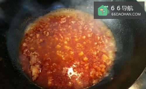 5炒熟的肉末加入一小碗半开水煮23分钟。