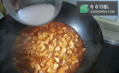 7出锅前加入少许淀粉水,让汤汁更加浓稠。