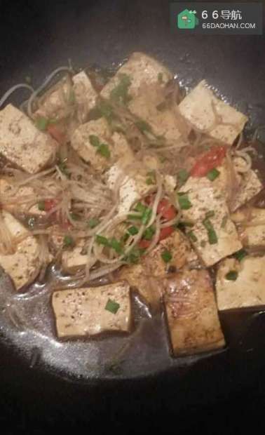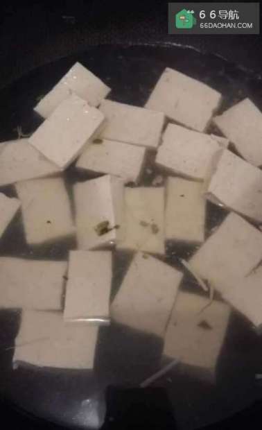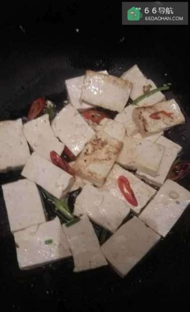 4放入老豆腐煎至片刻,加生抽,鸡精,适量清水
