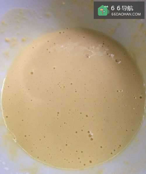 8开火,用小火,平底锅里放一勺油,又在锅里转均匀,舀一勺面粉鸡蛋糊,倒入平底锅中间,拿起锅慢慢倾斜着转圈,让面糊自然成形圆饼了状
