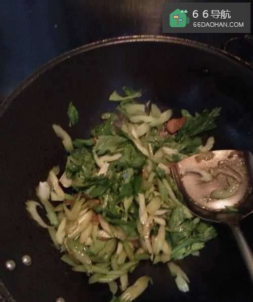 8等芹菜炒熟,肉也熟了,就可以出锅了。