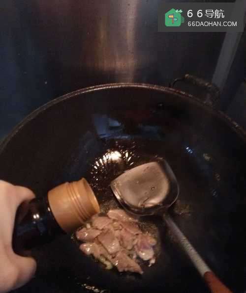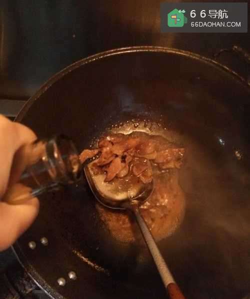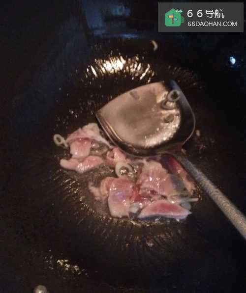 3放入肉片,炒匀,尽量快点翻炒,不让肉糊锅。