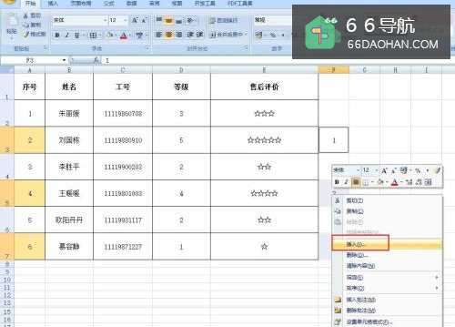 5鼠标定位在选中的单元格上,右击选择【插入】——【整行】