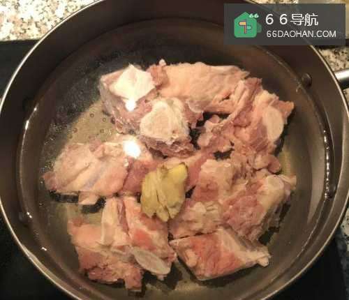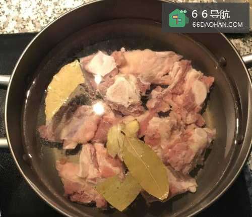 3放香叶,加入水到7分满,大火煮滚后,加入米酒和黑胡椒粉,小火慢煮1小时