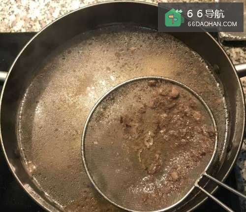 6汤滚时,捞掉浮在表面的杂质,煮到牛肉柔软,牛肉汤香味出现,用盐调味