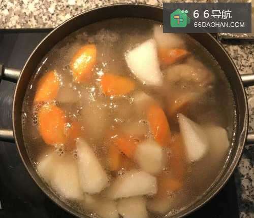 7即可放入萝卜,小火滚煮到萝卜软透即可,起锅前撒上葱花或香菜末