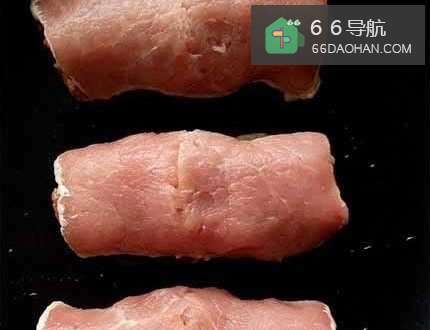 3.2片肉片排放在一起,用肉槌敲薄并稍微黏合
