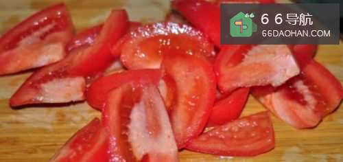 2接下来,将西红柿用清水洗净切块。