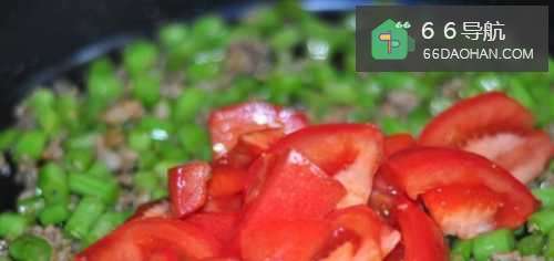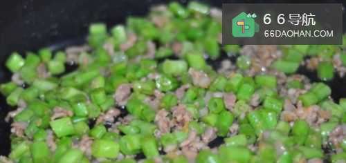 6倒入四季豆,翻炒均匀。