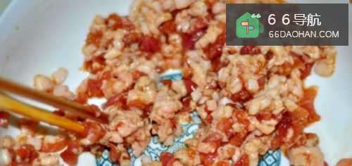 3然后,吧猪肉切沫,加入适量的料酒、生抽、盐拌匀。