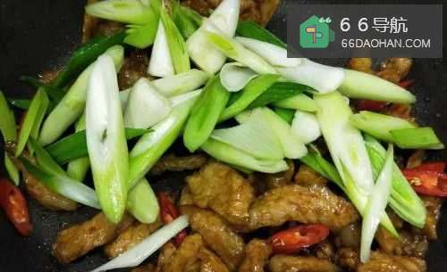 6放入辣椒,再将炒过的蒜苗拌入即可