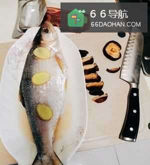 再用盐、料酒抹遍鱼身,铺上姜片腌约20分钟。