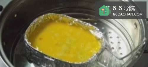 5蛋黄倒在上面,包上保鲜膜,再蒸上15分钟左右的时候差不多就可以拿出来,
