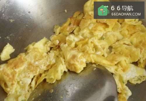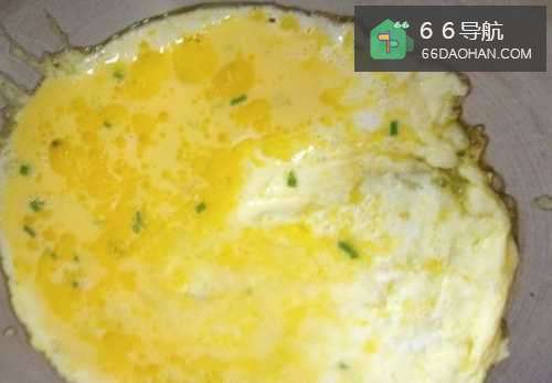 4蛋液底部变硬,可以铲起,翻面,炒散。