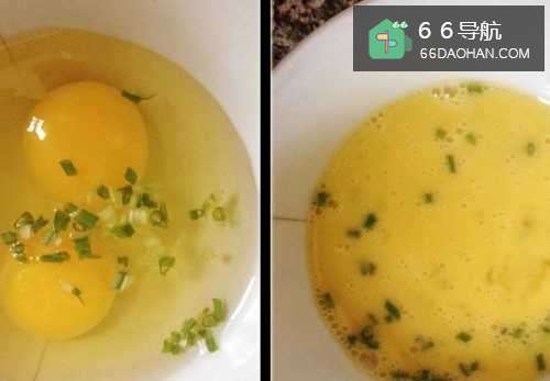 2鸡蛋打入碗中,放入葱花、滴入些许白醋,去腥。