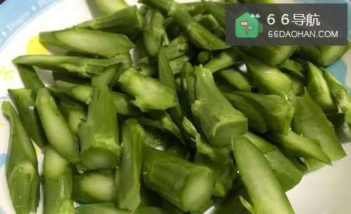 2芥兰取梗,洗净后斜刀切片。