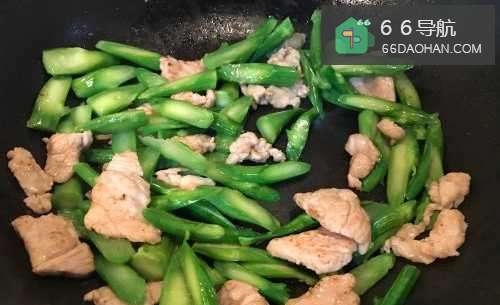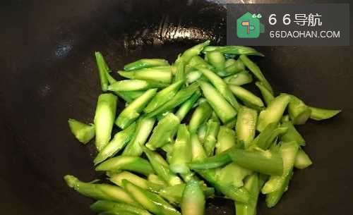 6倒入刚炒过的芥兰,翻炒约2分钟,收锅。
