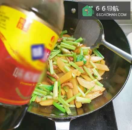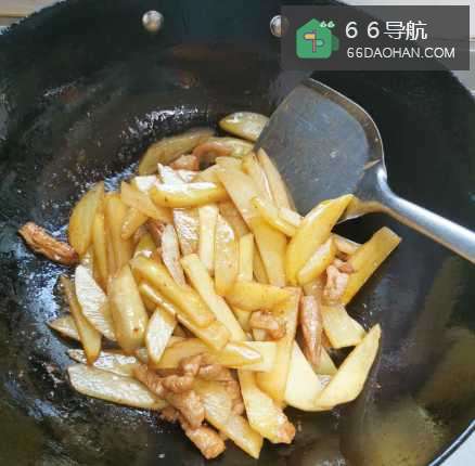 7最后,我们在沿锅边淋入少量水,等待炒熟后,加入少许盐进行调匀即可。