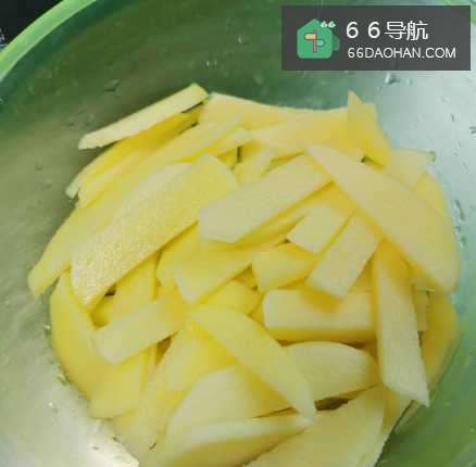 首先,我们将土豆去皮,然后用洗干净,切成条状。