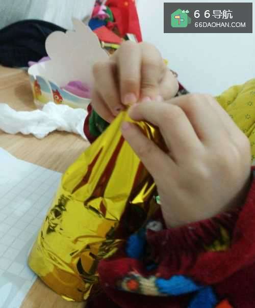2用金色即时贴将剪的矿泉水瓶包起来粘好。