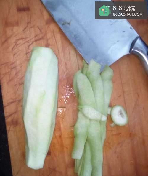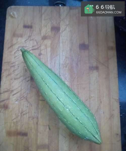 22、如图所示;把丝瓜皮削了,嫩的丝瓜不用削也可以。