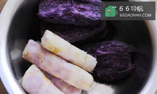 大家自己掌握火候,只要把紫薯和山药蒸熟就可以了