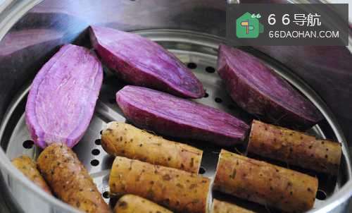 大家自己掌握火候,只要把紫薯和山药蒸熟就可以了。