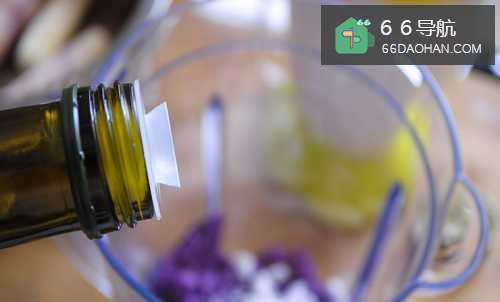 5紫薯中加入10g糖和10ml橄榄油,用搅拌机打成泥。